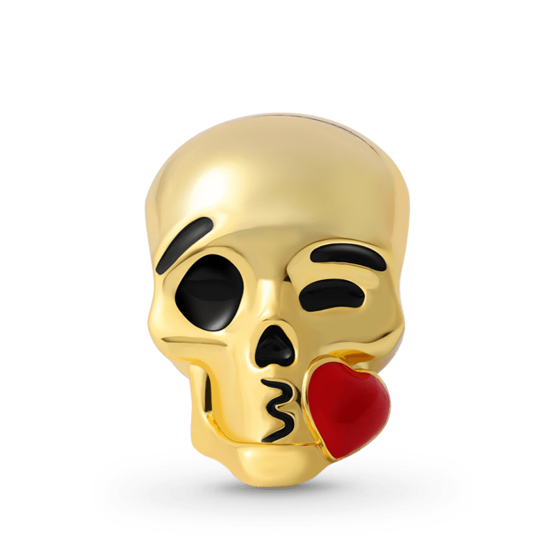 Blowing Kiss Skull Charm Bead Sterling Silver 18k Gold Palted
