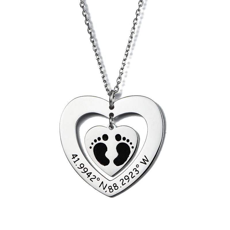 This Custom Coordinates and Baby Feets Necklace is the perfect piece for newborn! Available to customize with the coordinates of your baby's birthplace, this would make an amazing gift for you to memorize your baby's birth. Never miss it!