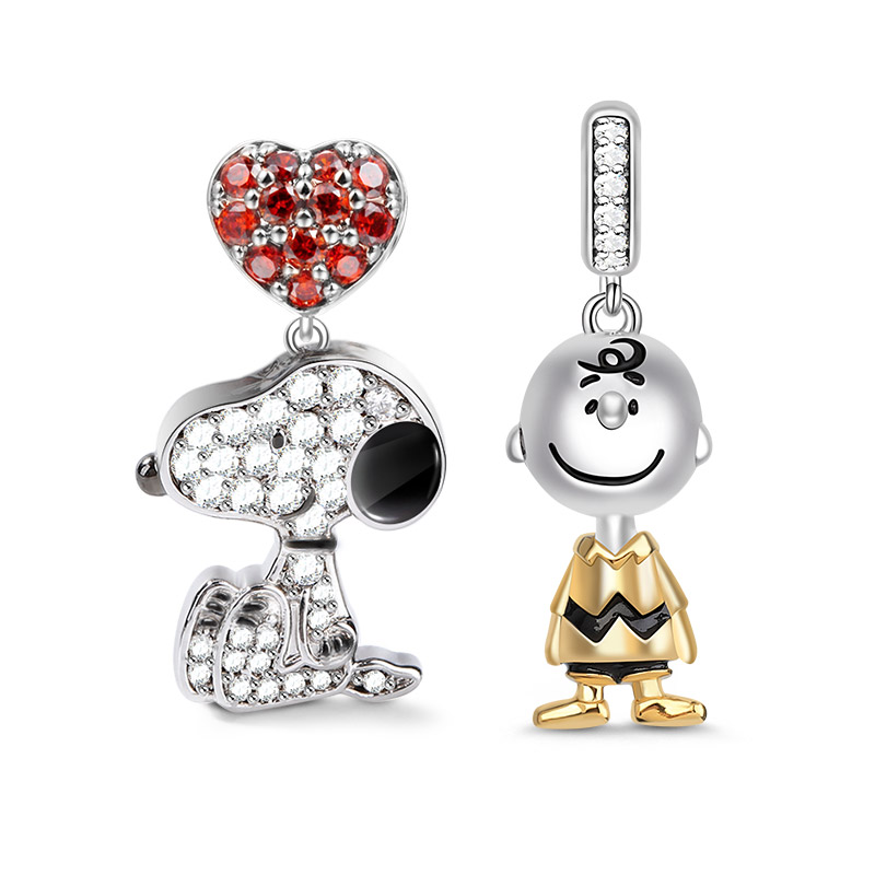 A little boy has a loyal, funny, imaginative and good-natured dog pet. Do you wanna own a magical pet like it? Gnoce he and his dog charm set can make your dream come true, crafted in sterling silver, gold plated, and decorated with brilliant CZ stones, very shinning and sparkling in any light. It's a good choice for the bracelet charms beads collections.