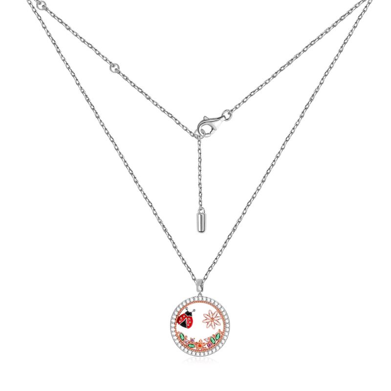 Everyone has their own secret inside their heart,this necklace can be a good listener for u. It is made from S925 Sterling Silver with Czs, plated as delicate flower, leaves and ladybug with different color. This eye-catching locket necklace will add sparkle touch to your outfit.