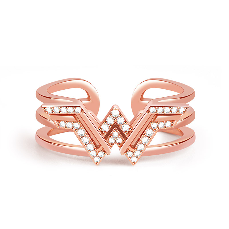 This wonderful ring is designed by the inspiration of wonder woman. She is symbolized justice and virtuous. This ring is hand crafted from 925 sterling silver, with 18k rose gold plated and clear CZ. Put this wonder woman ring on your finger to be a super hero.