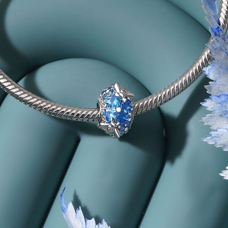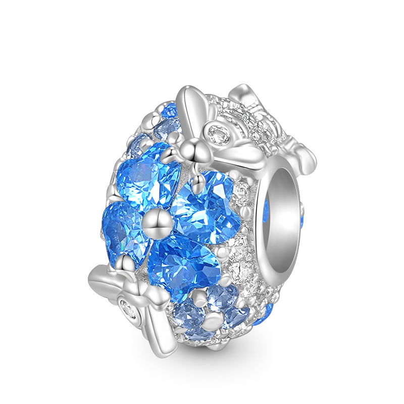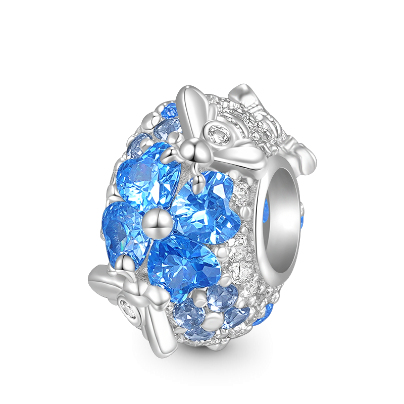 Inspired by the honey bee and four-leaf clover, which symbolizes hope and luck. Handcrafted in 925 sterling silver inlaid with clear & blue CZ stones, the honey bee sparkling in the light is said to transmit happiness and joy as a sun dancer. Wear this charm on your wrist, to remind you that nothing is impossible if you are trying to have a dream.