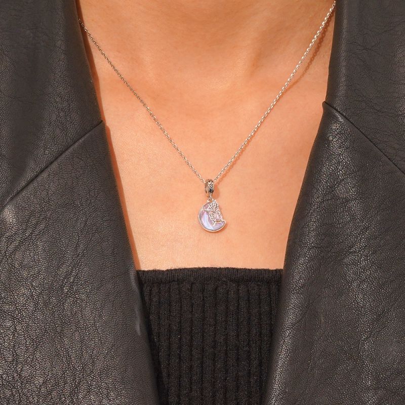 Look up into the distance with our amazing Pink Butterfly on the Moon Pendant! Made from high-quality 925 sterling silver, this necklace features a hollow butterfly design that will make you ecstatic.