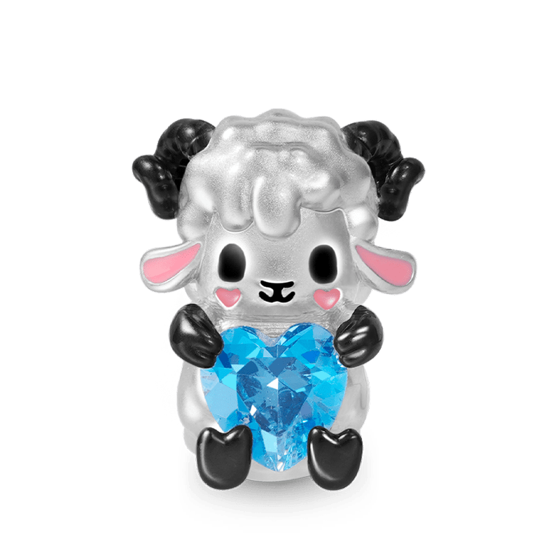 Gnoce Embrace Collection-Cute Sheep Embraces Blue Heart-shaped Gem Charm.