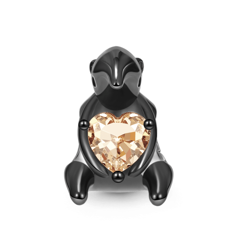 Gnoce Embrace Collection-Cute Tapir Embraces Brown Heart-shaped Gem Charm.