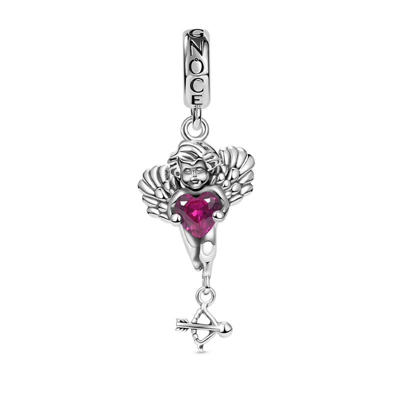 Gnoce Embrace Collection Eros Cupid Embraces Fuxia Heart-shaped Gem Charm. Cupid has always been hailed as a symbol of love. According to legend, he is a naughty little god with wings on his body. Once his arrow is inserted into the hearts of young men and women, it will make them deeply in love.