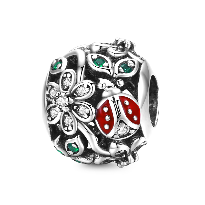 Inspired by Alice in Wonderland, this bead is full of magic flowers and a wonderful ladybug, may you be as innocent and happy as she is.