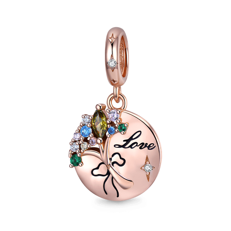 This pendant is handcrafted from 925 sterling silver 18K rose gold plated inlaid with colorful gemstones. It looks like a painting that shows love to the world. When you have no idea to to express your care and love for others, your lover, your friends and so on, you might as well send this charm; they will be happy if received this meaningful gift.