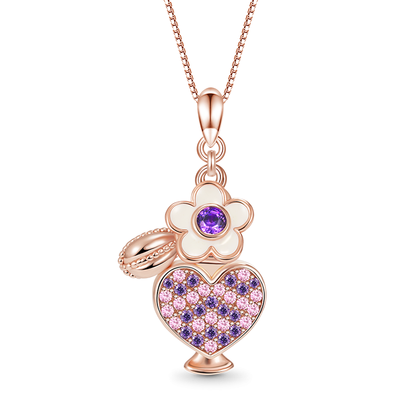 Breathe the charming fragrance and celebrate in style with our Exquisite Perfume Heart Bottle Necklace. Handcrafted from 925 sterling silver, this necklace features 18K rose gold and is inlaid with pink and purple cubic zirconia. It is a good wonderful gift for Valentine's Day or other anniversaries. What better way to celebrate an important memorial of yours than this?