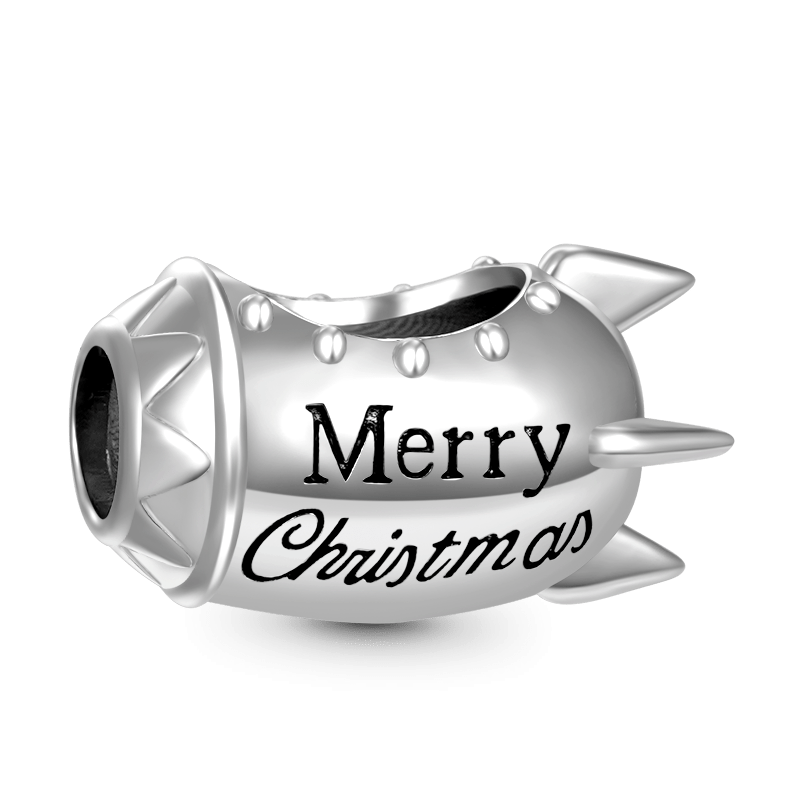 Celebrate the coming of Christmas with this Rocket Santa Claus Charm. The design depicts Santa Claus sitting atop the rocket quickly, and can't wait to send you and your family a Christmas gift. Handcrafted in 925 Sterling silver with red enamels, this dazzling charm also features the engraving "Merry Christmas" to all. Santa Claus's favorite saying as he flies across the world delivering presents and Christmas joy to children on Christmas Eve. Put this charm on your bracelet or necklace to accompany you live a wonderful Christmas.