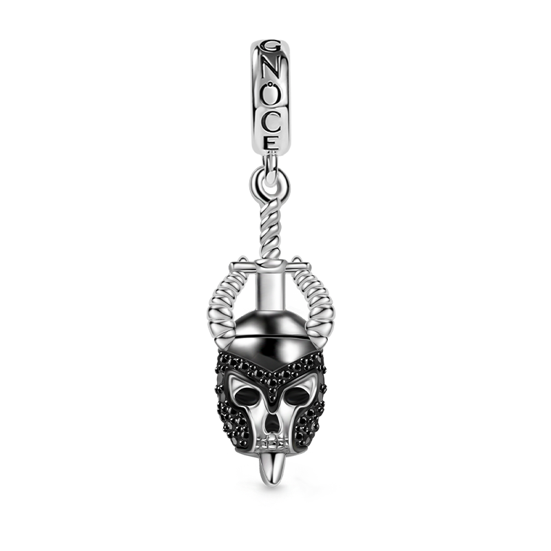 Skeleton Warrior Pendant Dangle Charm 925 Sterling Silver Black Plated