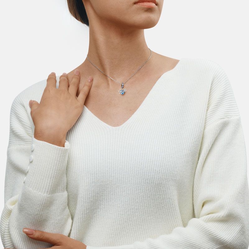 Celebrate what makes each of us unique with this Sparkling Snowflake Heart Pendant Dangle Charm. Handcrafted in 925 sterling silver, inlaid with Clear CZ stones, this charm features two pieces of delicate snowflakes with a blue heart design. Wear it to capture the beauty of snowflakes dancing in the winter air. The perfect gift to express how special your loved one is to you.