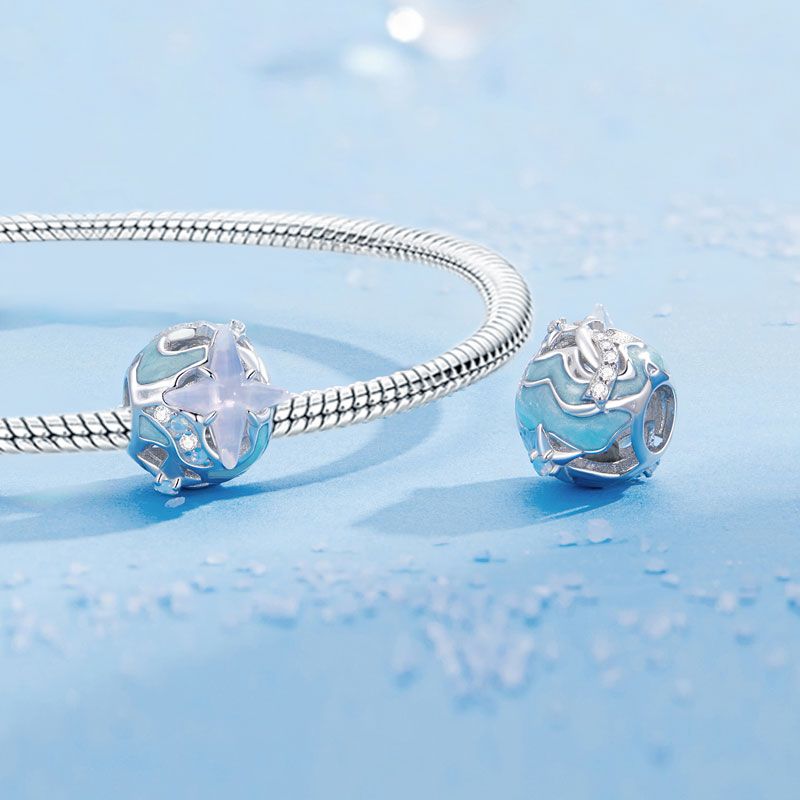 The Sparkling Star Round Charm is a dazzling accessory crafted from 925 sterling silver. This charm features a round design adorned with sparkling stars, creating a mesmerizing and radiant effect. The shimmering stars symbolize the brilliance and wonder of the cosmos.