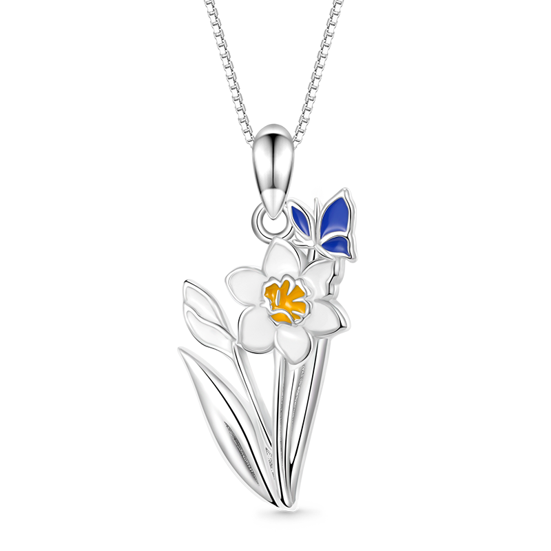 Narcissus is a symbol of innocence and purity, friendship, and happiness. Encircled with white enamels narcissus in a nod to the popular flower elements, this pretty necklace in 925 sterling silver lends natural appeal to your neck. Add this simple design to your look to represent something you love.
