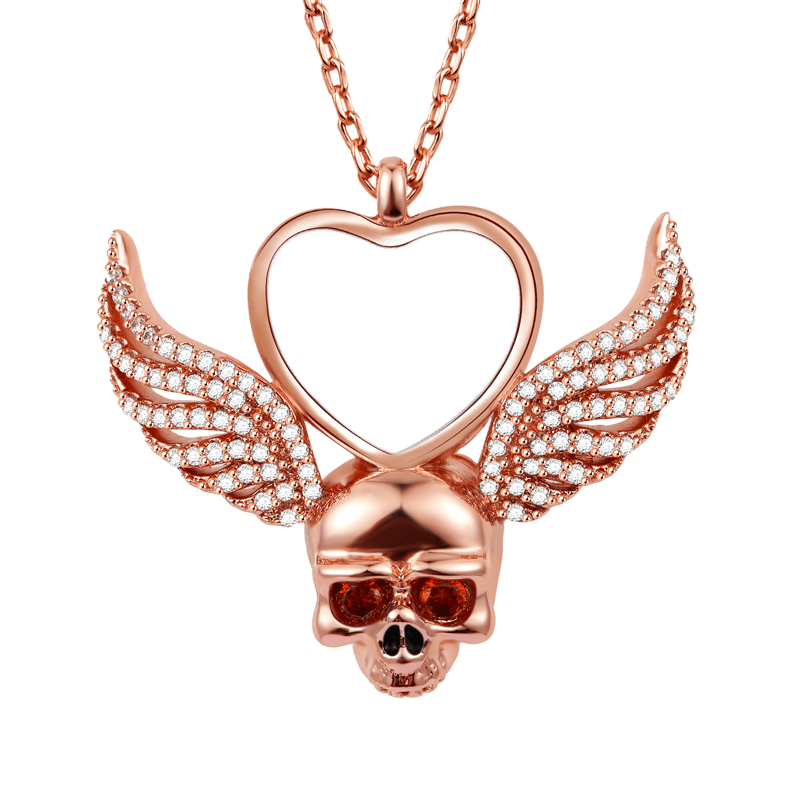 Wings Skull Heart Photo Necklace 925 Sterling Silver 18k Rose Gold Plated